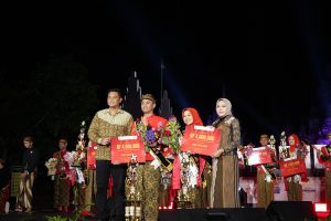 Bupati Klaten, Hamenang Wajar Ismoyo beserta Ketua TP PKK Klaten, Fahrani Hamenang menyerahkan piala dan penghargaan secara langsung kepada pemenang.